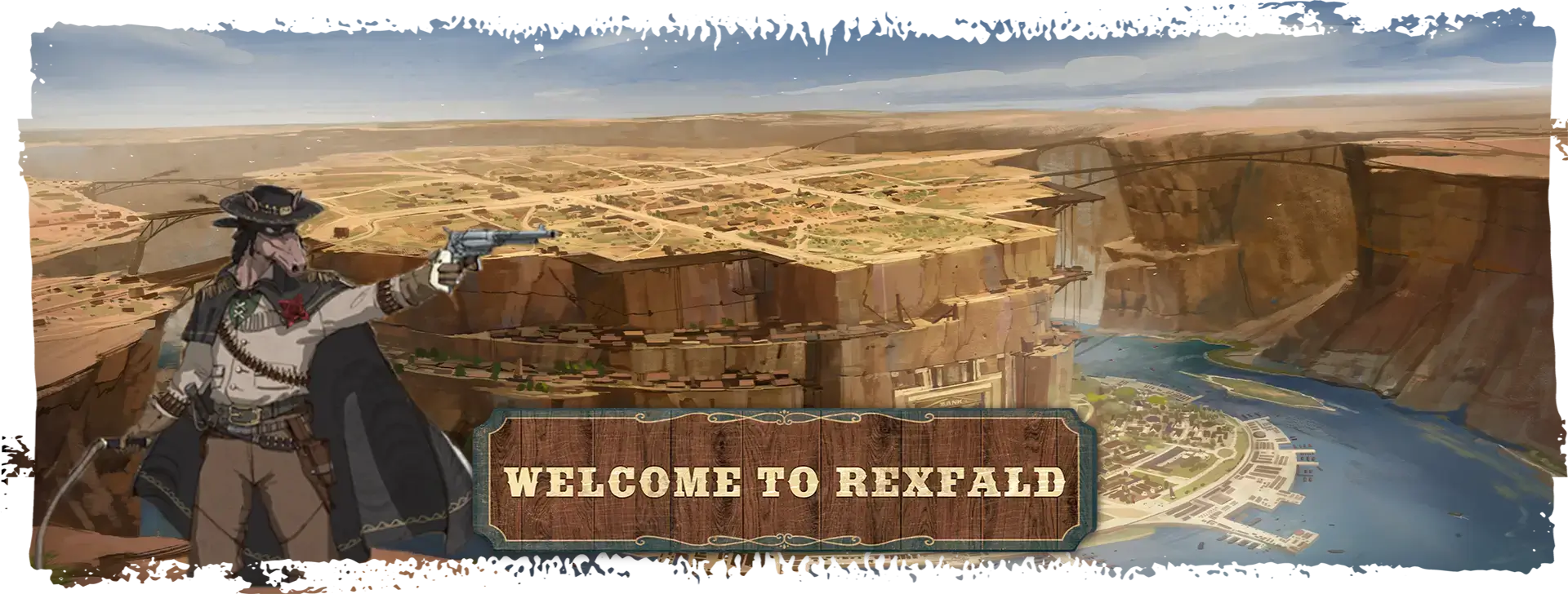 Ride across open prairie, red-rock desert, and primordial forests as you make a name for yourself on the Endless Frontier. Rexfald is a land where Tall Tales walk amongst common folk, Constellation Sheriffs face-off against dastardly Out-Liches, and Leyline Rails direct screaming Eternal Engines to the far-corners of every Territory. A land of myth and legend, where an unknowable Cryptic World tugs at the very foundations of Reality. For those that hold Grit and Glory in their heart, it is a frontier full of endless adventure.